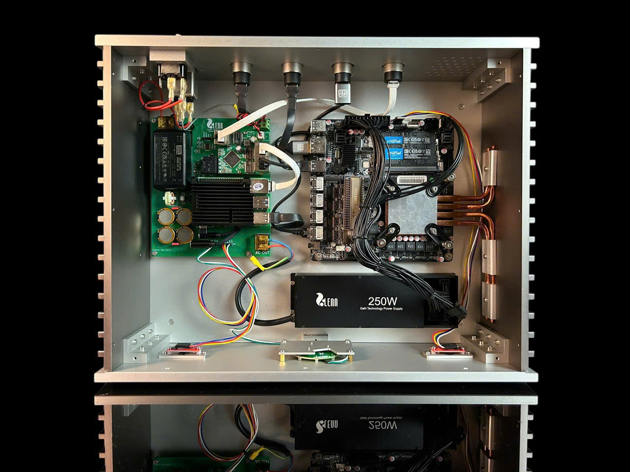 • Thiết kế Dual CPU (intel & ARM) hoạt động độc lập. Intel cho tác vụ quản lý thư viện và xử lý dữ liệu, ARM cho truyền tải dữ liệu đã được xử lý sang thiết bị giải mã (sử dụng phần cứng của Comute Module 4 và I/O Board với nguồn Tiny UPS dùng pin sạc xả, lọc Galvanic cho giao thức ethernet).